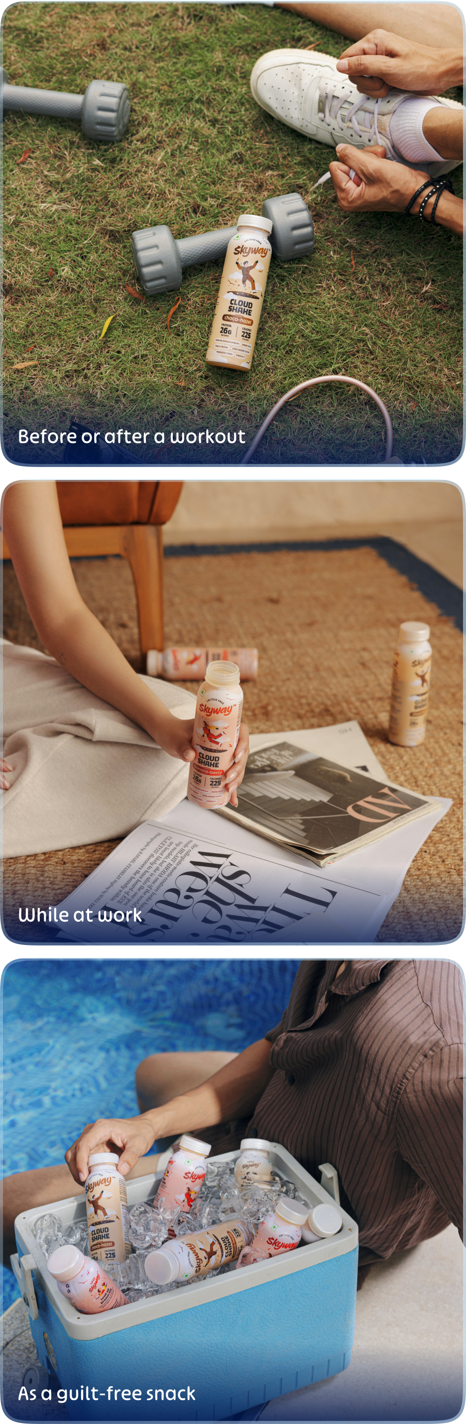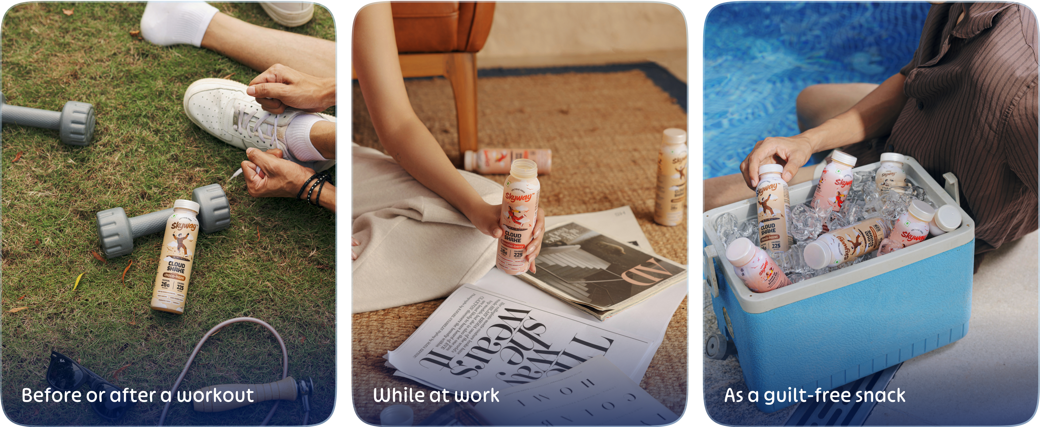 The less convenient it is to do something, the less likely you are to do it. That’s why we’ve made drinking Skyway a breeze. No more having to choose between messy protein powders or ordering in unhealthy food. Have your protein on the go, at your convenience.